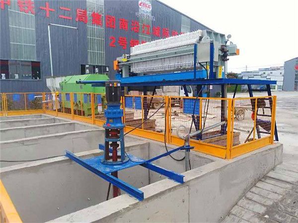 板框压滤机是很成熟的脱水设备,在污泥脱水项目上应用很多。压滤机将带有滤液通路的滤板和滤框平行交替排列,每组滤板和滤框中间夹有滤布,用压紧端把滤板和滤框压紧,使滤板与滤板之间构成一个压滤室。污泥从进料口流入,水通过滤板从滤液出口排出,泥饼堆积在框内滤布上,滤板和滤框松开后泥饼就很容易剥落下来,铸铁的板框压滤机设备重量与体积大,性能稳定具有操作简单,滤饼含固率高,适用性强等优点。